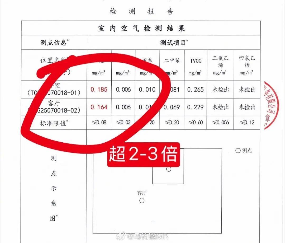 博主馬先生稱,他1月底入住杭州市蕭山區該套月租60,676元的房子,中介稱房子安全無甲醛。盡管他使用兩臺24小時運轉的除甲醛空氣凈化器,5月初仍出現嚴重咳嗽、嗓子疼、結膜炎和過敏癥狀。7月初專業檢測顯示,房屋甲醛超標近三倍。馬先生稱已花費4萬余元治療調理身體,并向房東要求退租及退還6萬余元押金遭拒。