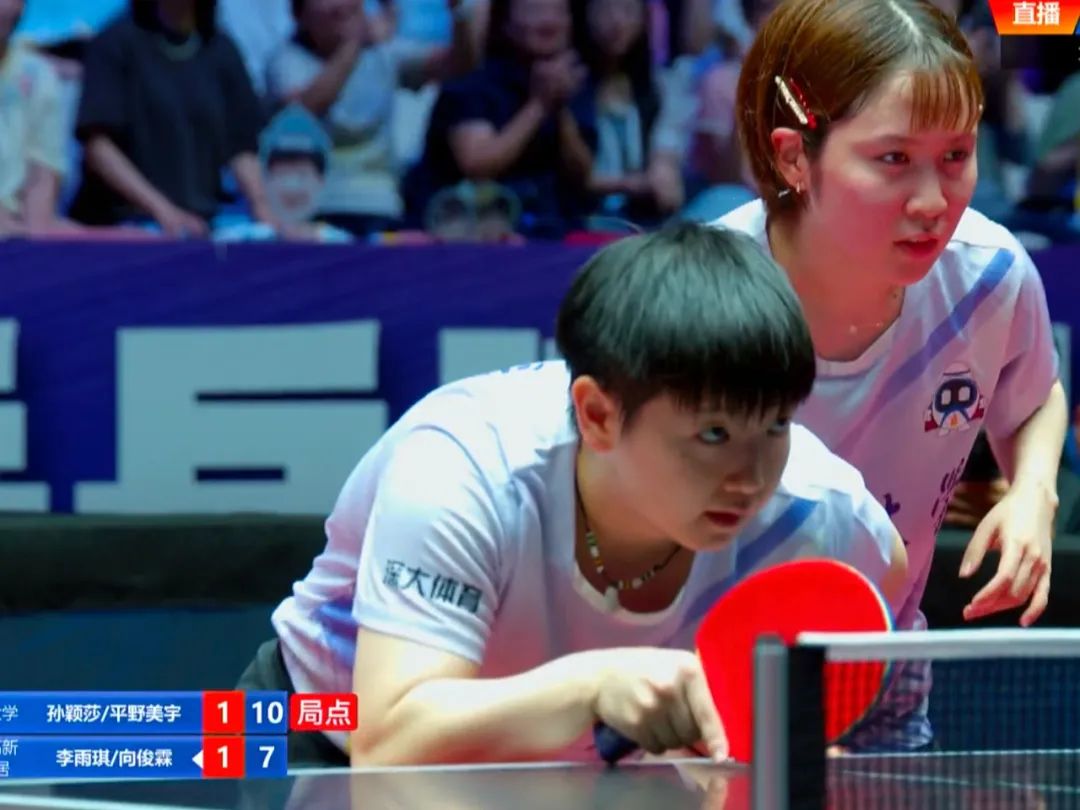 孫穎莎/平野美宇組合3-2逆轉戰勝李雨琪/向俊霖,為深圳大學隊拿下女團首盤關鍵勝利。首次搭檔,孫穎莎和平野美宇配合較生疏,首局一度1-5落后,對手憑借默契銜接率先取勝。中局階段,孫穎莎正手反拉配合平野美宇的臺內控制,2-1逆轉局勢,但對手防守頑強,關鍵分毫不手軟,將比賽拖至決勝局。第五局孫穎莎/平野美宇完全掌握節奏,以11-3速勝,大比分3-2戰勝李雨琪/向俊霖。