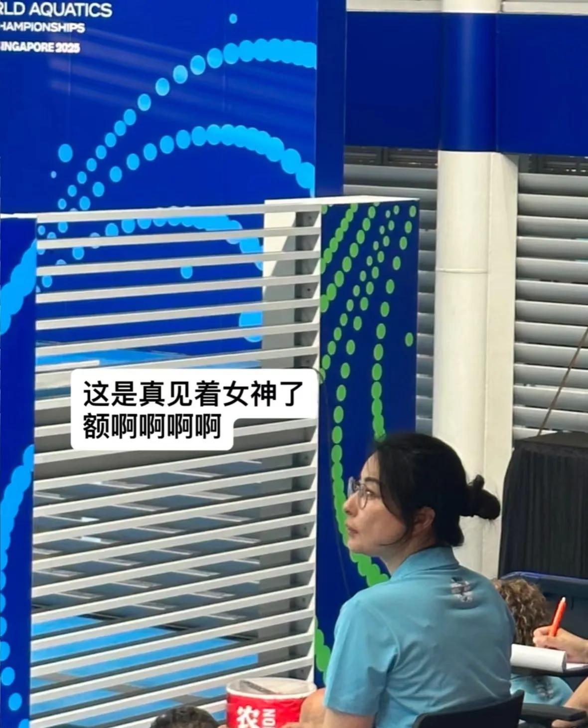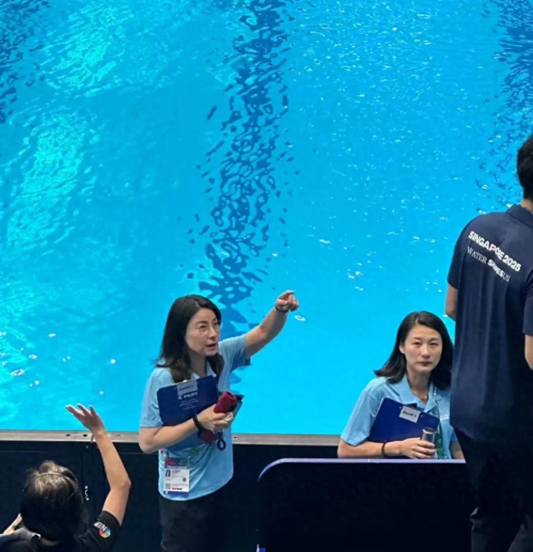 世界游泳錦標(biāo)賽在新加坡舉辦,郭晶晶以裁判的身份出席,去現(xiàn)場看比賽的人,都發(fā)了偶遇郭晶晶的照片。