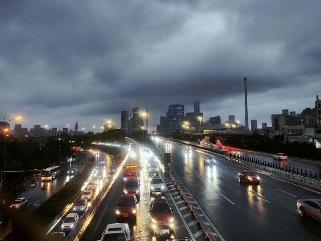暴雨給早高峰的交通帶來了極大的挑戰。道路路面濕滑,能見度下降,部分低洼路段出現積水,這些因素導致多區道路交通指數達到嚴重擁堵級別。早高峰由于瞬時雨量較大,北京部分路段出現短時積水情況。西南部雨勢較大,西三環、西四環、西五環以及蓮石路、京良路等路段交通壓力較為突出 。受積水影響,7時35分,京港澳高速閻村橋雙向采取臨時交通管理措施,斷路大約持續了20分鐘。現場交警在積水情況有所緩解后,引導車輛從中間車道通過,逐步恢復了該路段的通行。