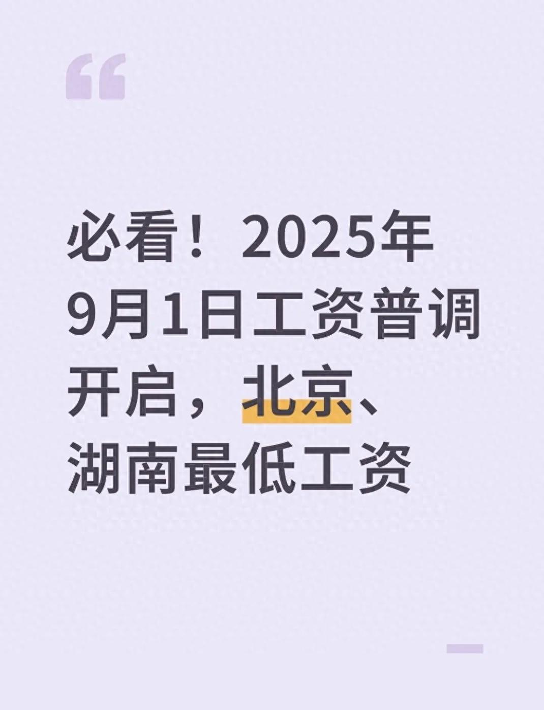 2025年9月1日起,北京、湖南等地開始執行新的最低工資標準,以下是相關細節: