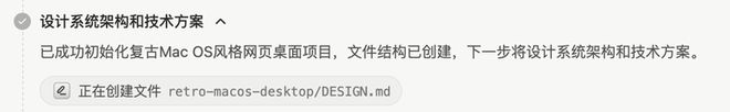輸入Prompt:幫我做一個網(wǎng)頁版的復古 Mac OS 桌面。 1、外觀風格:要像經(jīng)典的 Mac OS 9 系統(tǒng),有標志性的頂部菜單欄和可以拖動的窗口。 2、內(nèi)置軟件:桌面需要包含三個基本軟件:一個可以打字的“記事本”,一個能用 AI 畫畫的“AI 畫家”,以及一個“計算器”功能。 3、賬戶系統(tǒng):這個網(wǎng)站必須有賬戶系統(tǒng)。