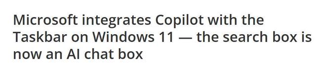 10月17日消息,微軟宣布即將推出Windows 11 的一項重大更新,任務欄上的 Windows 搜索框將被 Copilot 聊天框取代。微軟表示,此舉旨在使任務欄成為一個動態(tài)中心,幫助用戶事半功倍,將日常互動轉化為高效便捷的體驗。