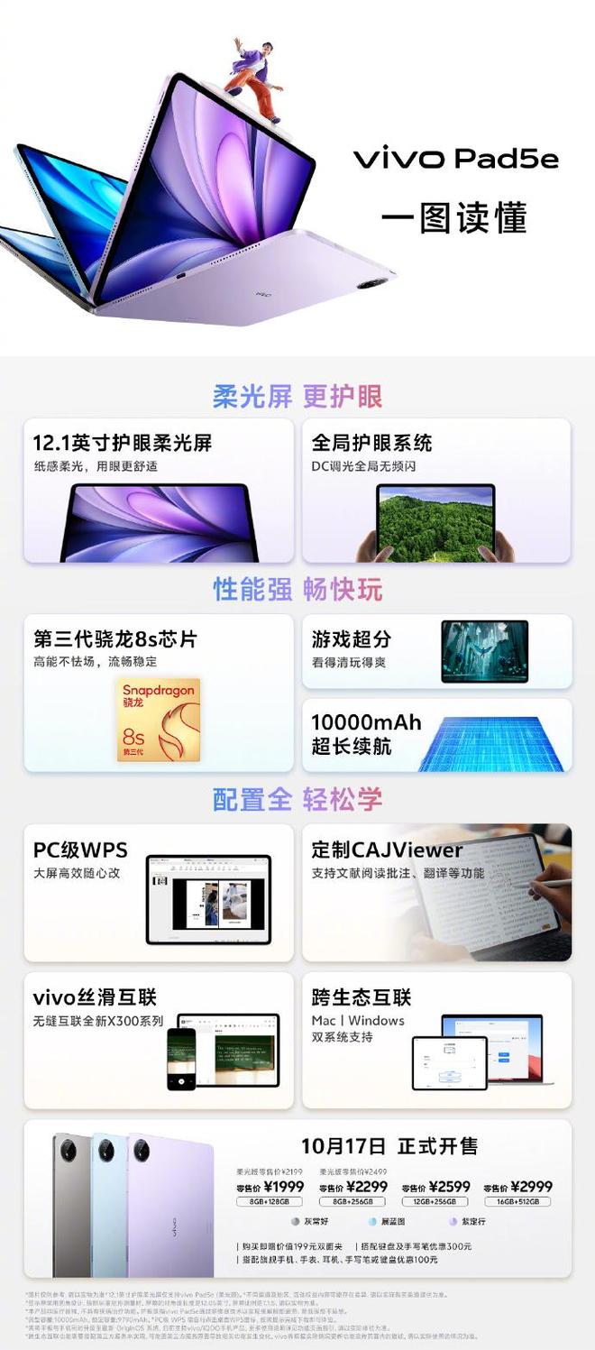 10 月 17 日消息,vivo Pad5e 平板今日開售,分為標準版和柔光版,售價 1999 元起。
