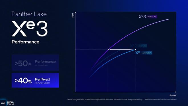英特爾此前僅簡要表示,Xe3 架構(gòu)應(yīng)較 Xe2 性能提升超過 50%,并較 Xe 能效提升至少 40%。現(xiàn)有泄露數(shù)據(jù)與官方趨勢基本吻合。