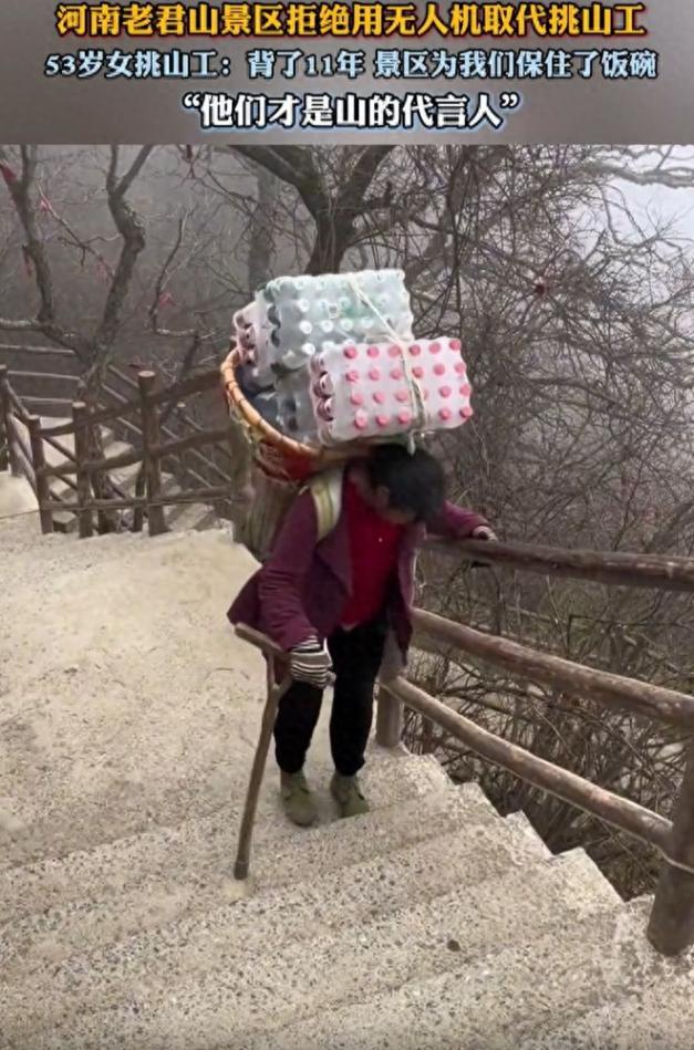 再說了,老君山的挑山工都有十幾年經驗,哪段路要歇腳、哪處石階滑,閉著眼都知道,他們順帶還能幫游客指個路、扶一把,這可不是無人機能替代的服務。