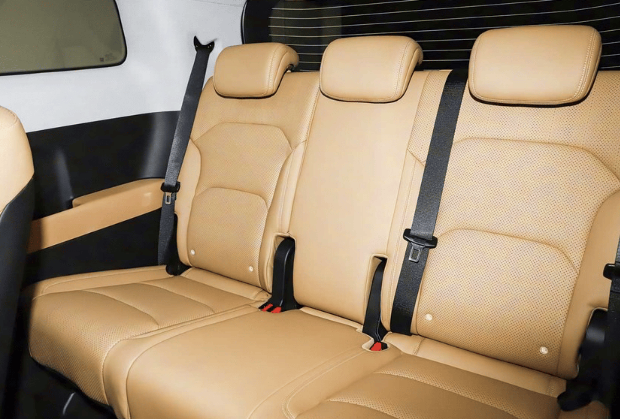 五菱星光L的車身也十分高大威猛,車頂配備了銀色的全尺寸行李架車窗四周加入了銀質裝飾邊框,黑色的B柱/C柱與全車黑色隱私玻璃融為一體,形成了鮮明的撞色對比,擁有不錯的商務氣息。車門采用了凹面的設計,擁有更多的靈動性,讓龐大的車身不會太臃腫。四個門把手依舊采用了常規的設計,并自帶無鑰匙進入系統。車身迎賓踏板處加入了粗壯的銀色鍍鉻元素,并與前后保險杠的銀色飾板形成呼應。配備了20英寸的鋁合金輪圈,匹配了235/55 R20規格的輪胎,毫無違和感。尺寸方面,該車的長寬高分別為4980/1930/1760mm,軸距為2950mm,并提供5座和6座可選。